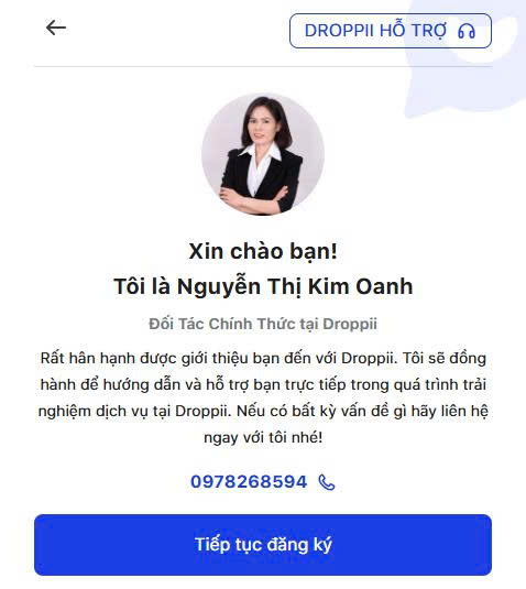 - Bước 1: CLICK VÀO ĐÂY để đăng ký tài khoản trải nghiệm kinh doanh trên Droppii
